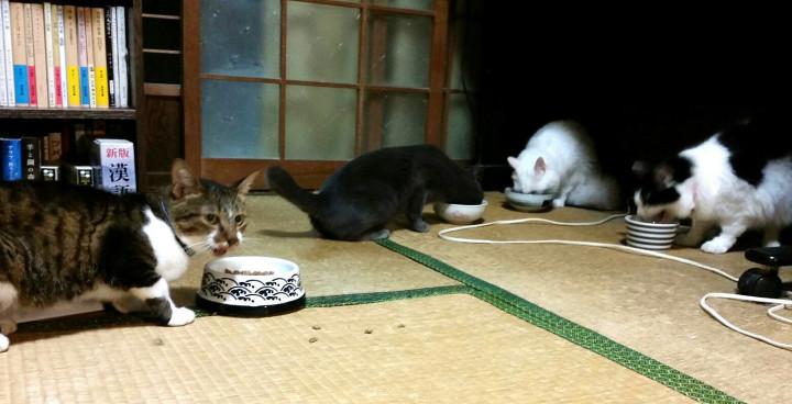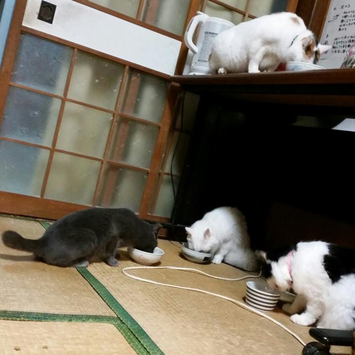もんさんは流動食なのでここで食べてくれるのは助かります(他のこに食べられてしまう心配なし)。