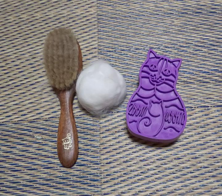 画像の毛玉は5分くらいのブラッシングで取れた毛を