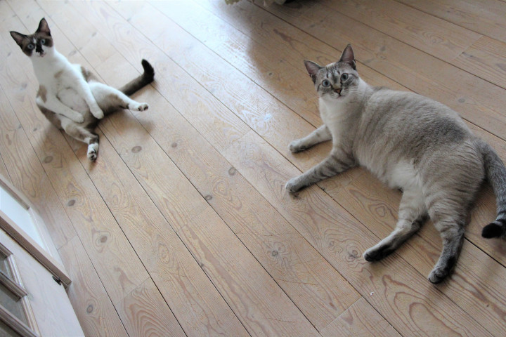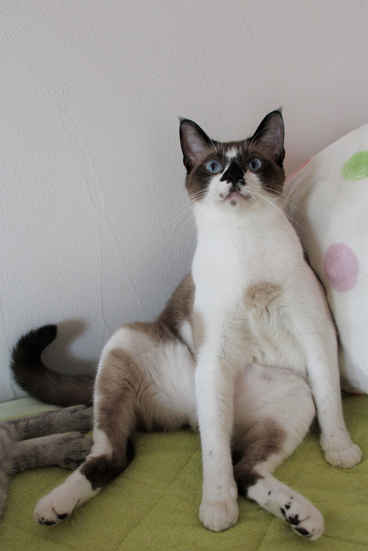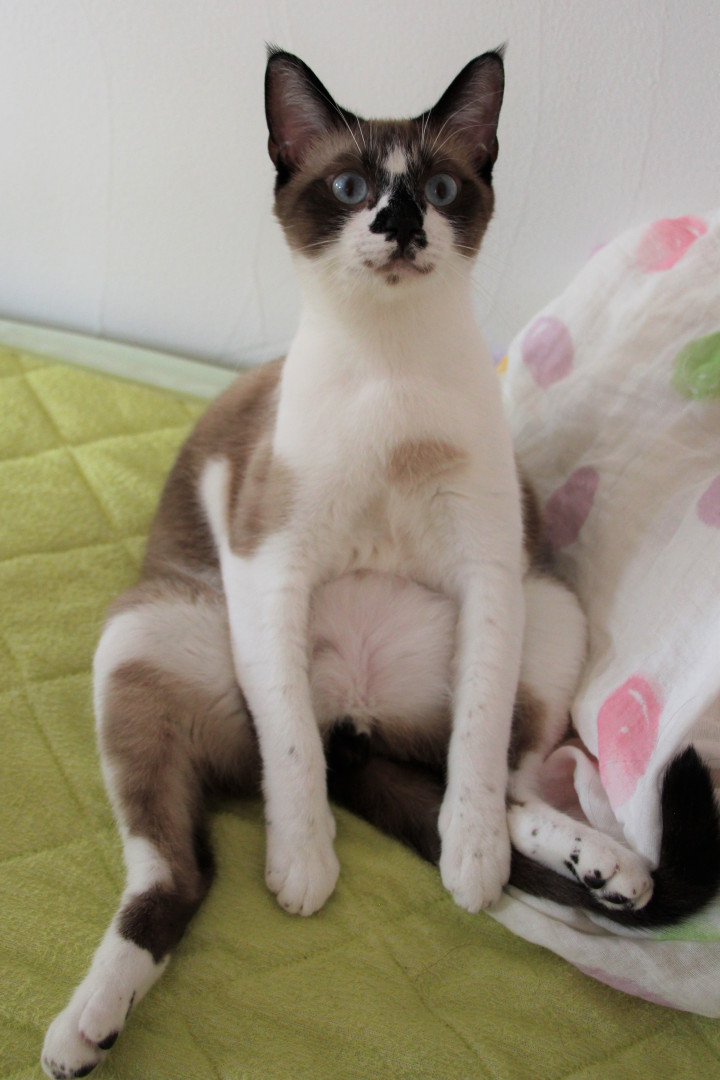 兄弟猫のチーちゃんは、そんな座り方をしません。
