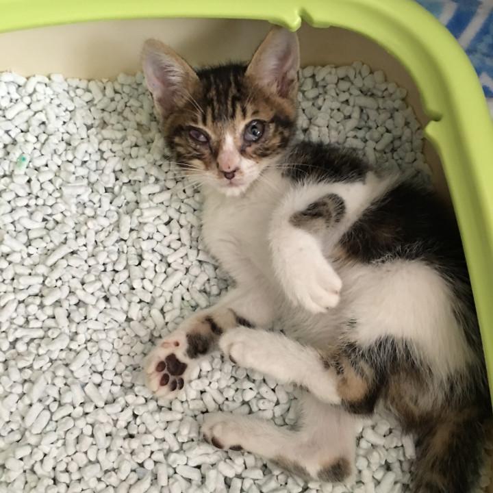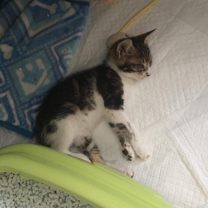 最初、おもちちゃんも、トイレで寝てたっけ。野良ちゃんだったからかな、毛布の上に乗せても、居心地悪そうにして、気づくと、トイレで寝てた。でも、今は、毛布やタオルが好きになってきた。だから、くろまめ君も、好きになるといいね。こんなに小さいのに、夏の暑い中、硬い土の上で、寝てたんだね。