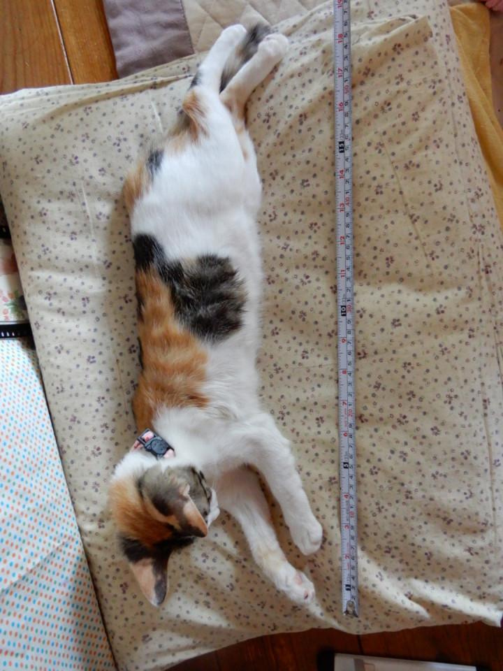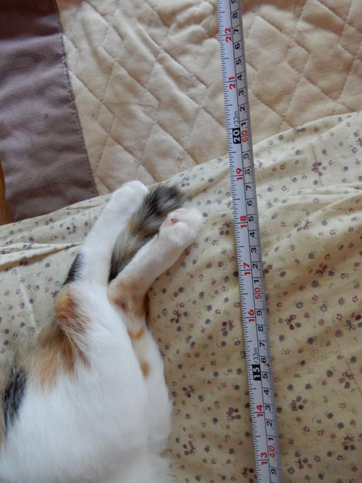 メジャーを並べると遊んでしまい測れません