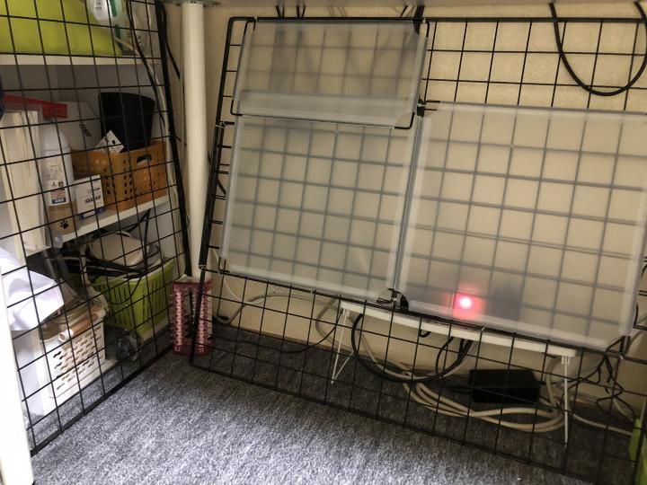 ワイヤーネットでバソコン机の下の配線も保護しました。