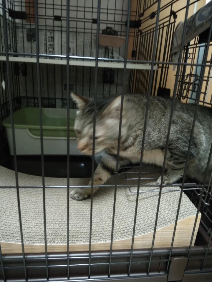 でもともだちくん的には前のケージよりゆったりできるしNクールのベッドも導入してあるしトイレも大きくなったし、試しに買ってみた爪とぎもピッタリでバッチリ☆