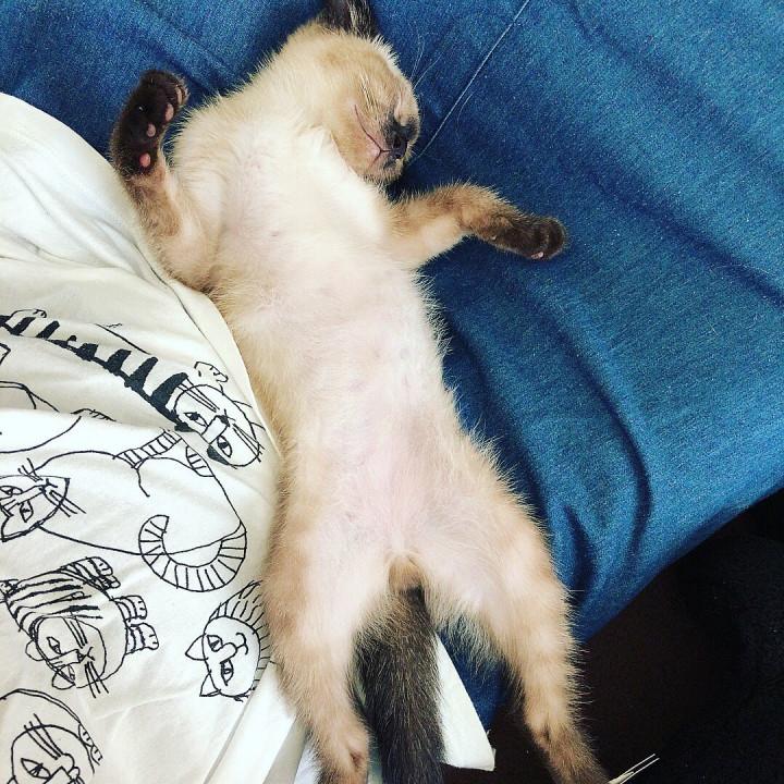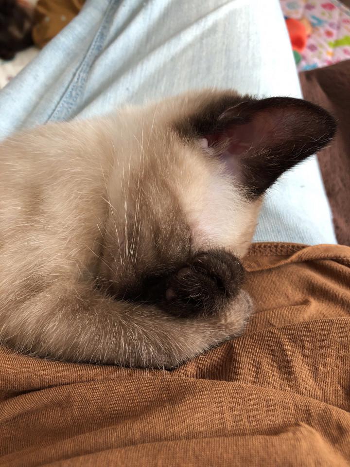 やっぱり子供だからか、誰かにくっついていたいことが多く、私が休みの日は私にベッタリ、私が居ない時は先輩猫にベッタリ。