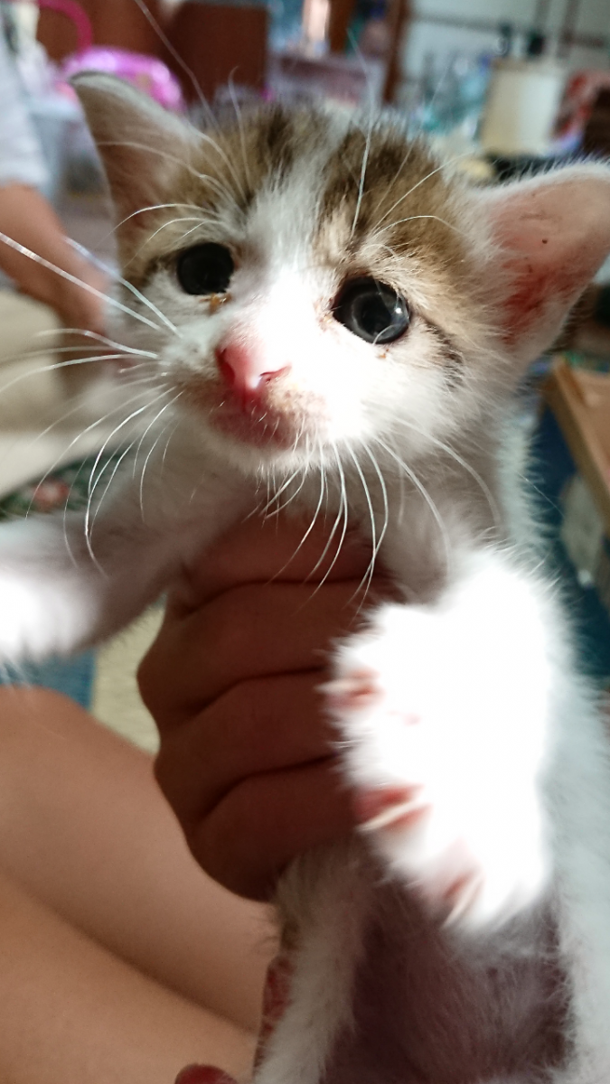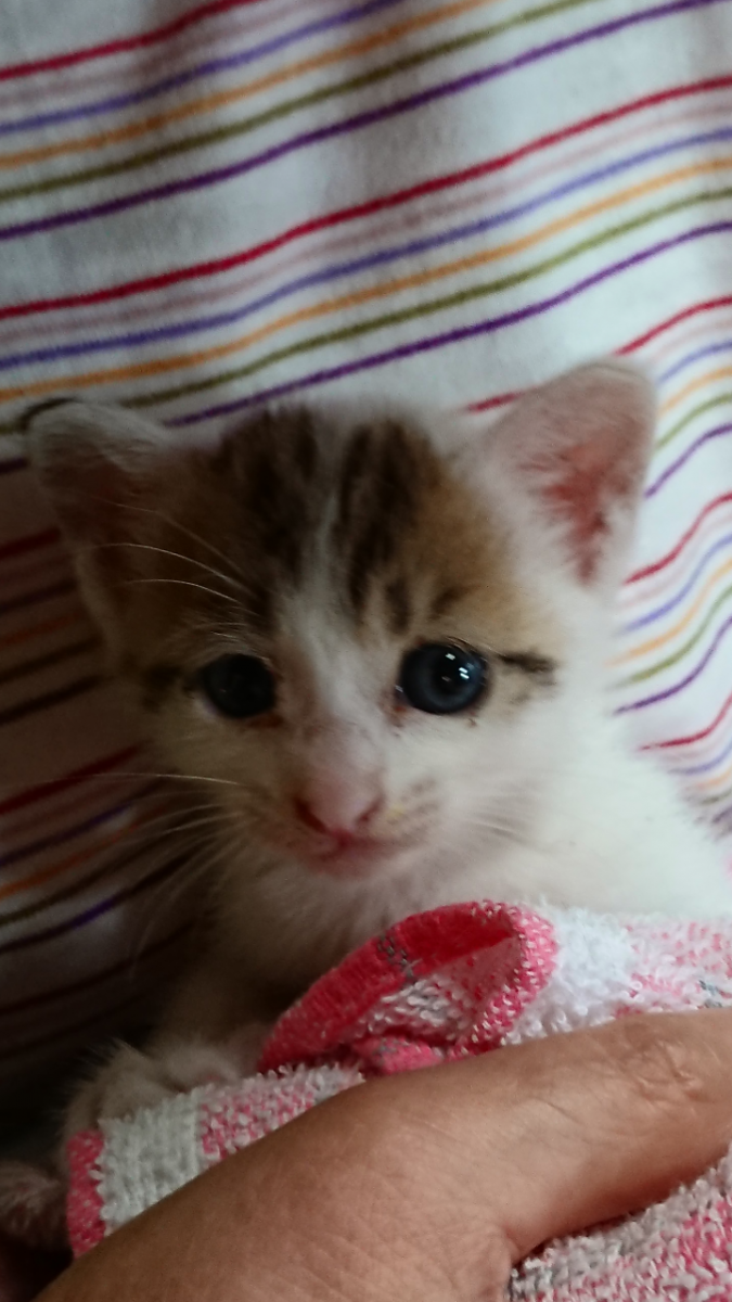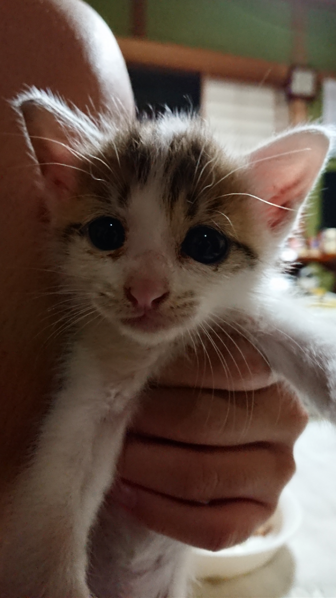 私の弟が職場近くで保護した、よちよちの子猫を持ってきたと…