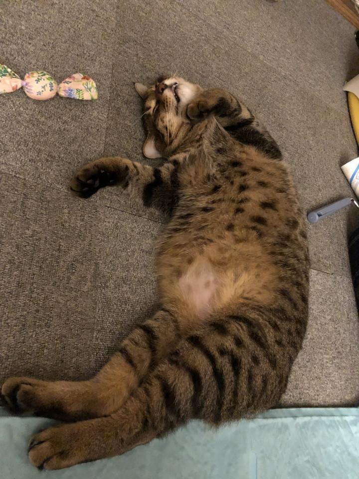 夜は皆と仲良く寝てますが朝起きるといつもコマママのそばで寝てます)