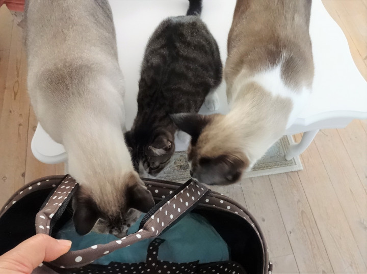 ミカンちゃんを入れていく バッグをくんくん
