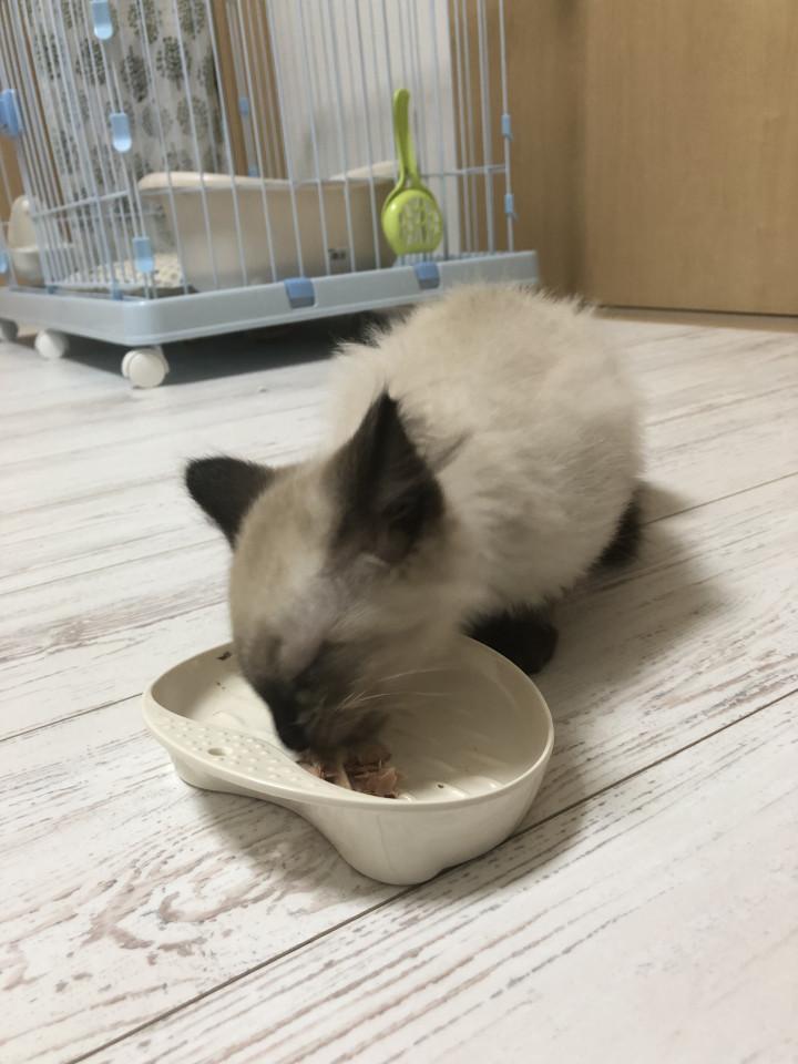 新しいお皿を使うご飯前に同じお店で買ってきたおやつをあげる事にしました