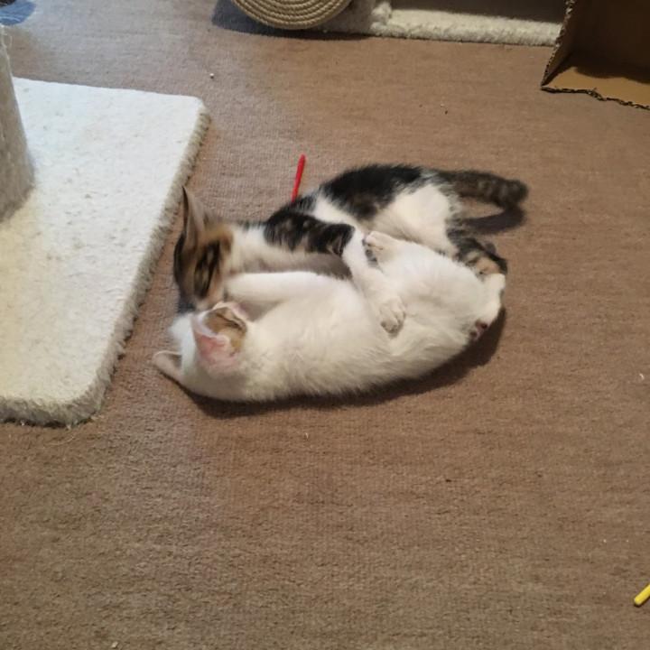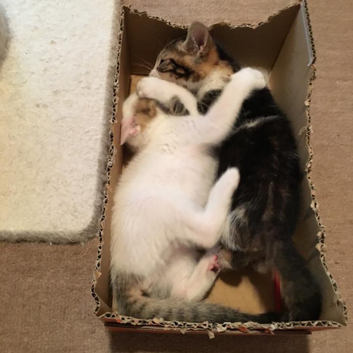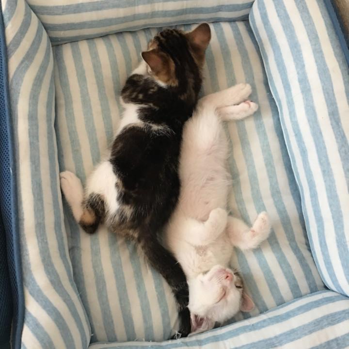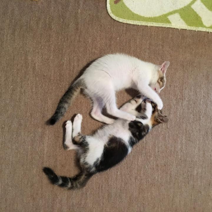 ほら、また(^^;;おもちとくろまめは、仲良し。今日は、くろまめ、体重が、1キロになってた。600gだったのに、しっかり、成長してる、嬉しい😂おもちは、900g、女の子だから、少し小さいけど、2匹の成長は、嬉しい。もっともっと、おっきくなってね(^^)
