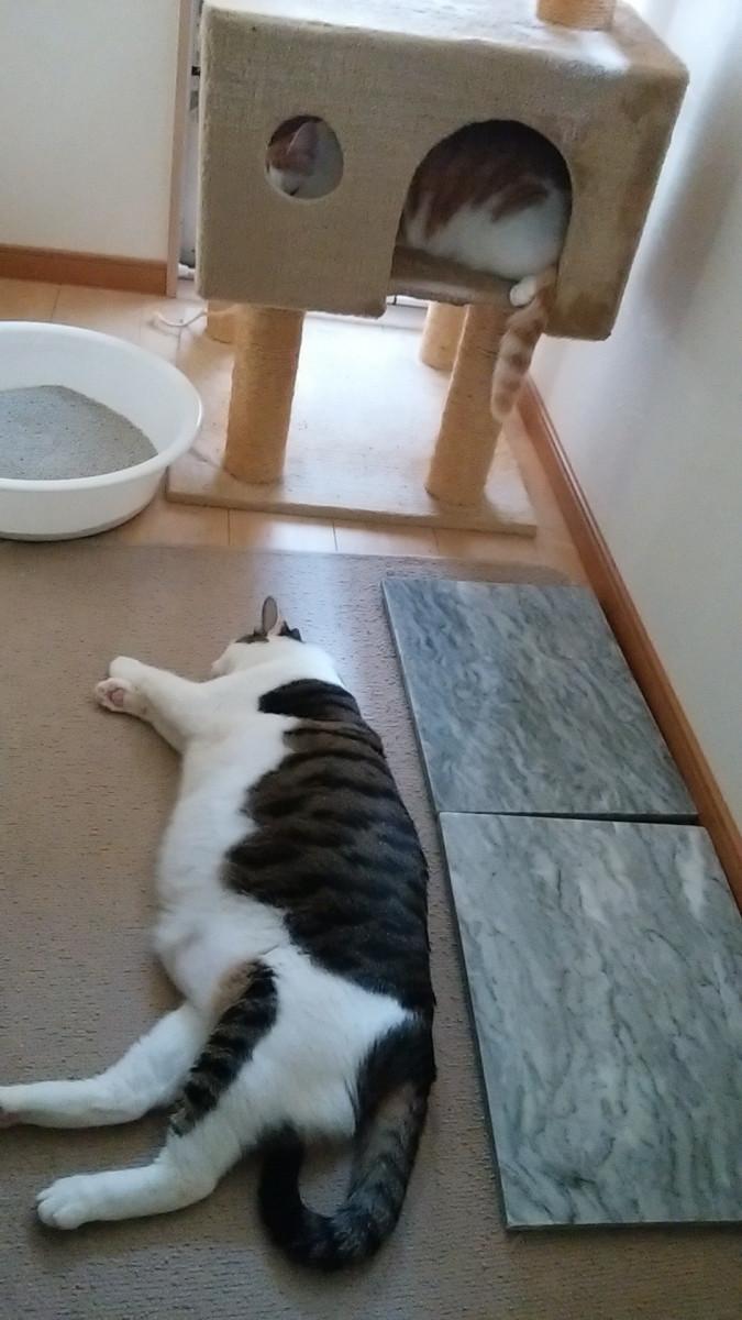 そんなこんなでバタバタの中、我が家の7にゃんはコーギーくんの大変な今を知っているのか知らないのか、、、熟睡してます笑