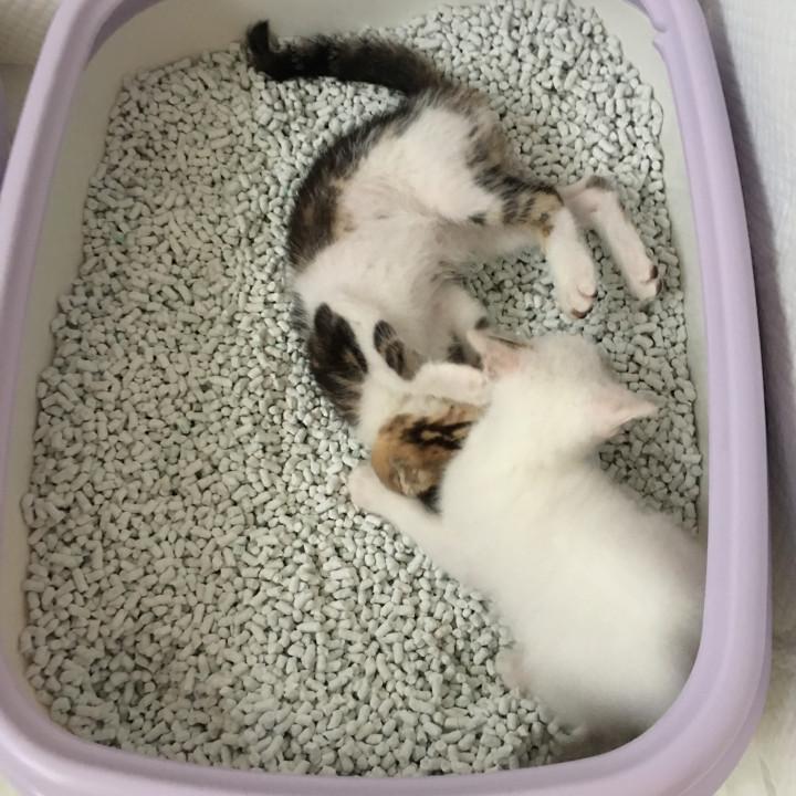 あー!トイレで遊んじゃ、ダメ!くろまめが、トイレで、砂をかきかきしてると、おもちが走って行って、くろまめに、覆いかぶさる。おもちが、かきかきしていても、くろまめが走って行って、おもちに、アタックする(^^;;で、トイレの中で、楽しくなっちゃう。ねえ、オシッコしたかったんじゃないの〜?