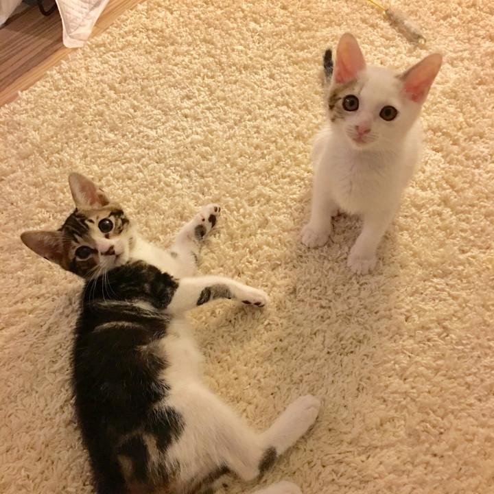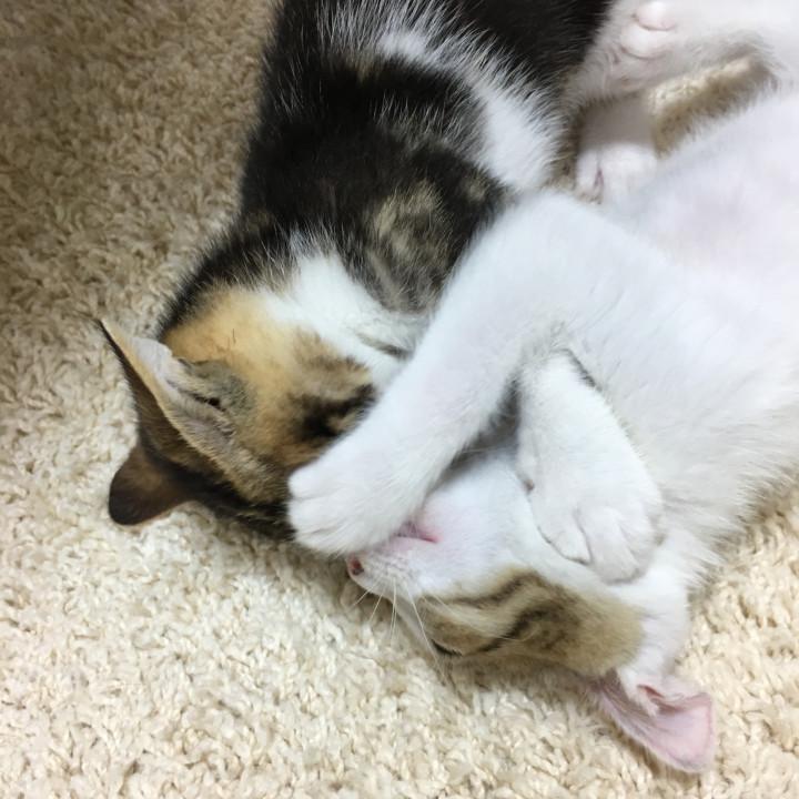 今日は、いつもと変わらない朝だけど、さっき、おもちとくろまめは、新しい家族の元へ行きました。こうして、この何日間か、我が家に停滞していた、台風おもち、くろまめ号は、私と先住猫たちの心に、あたたかな爪あとを残して、巣立って行きました😹
