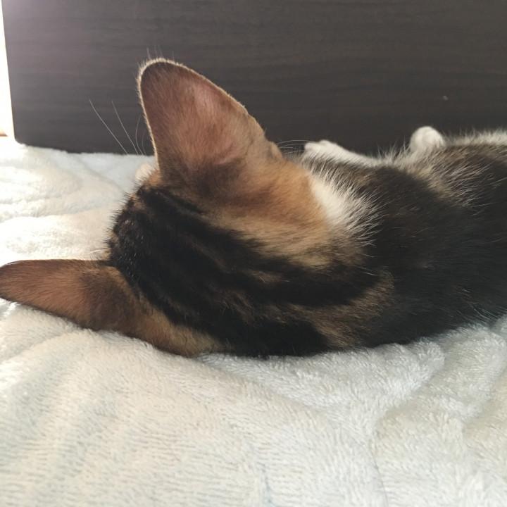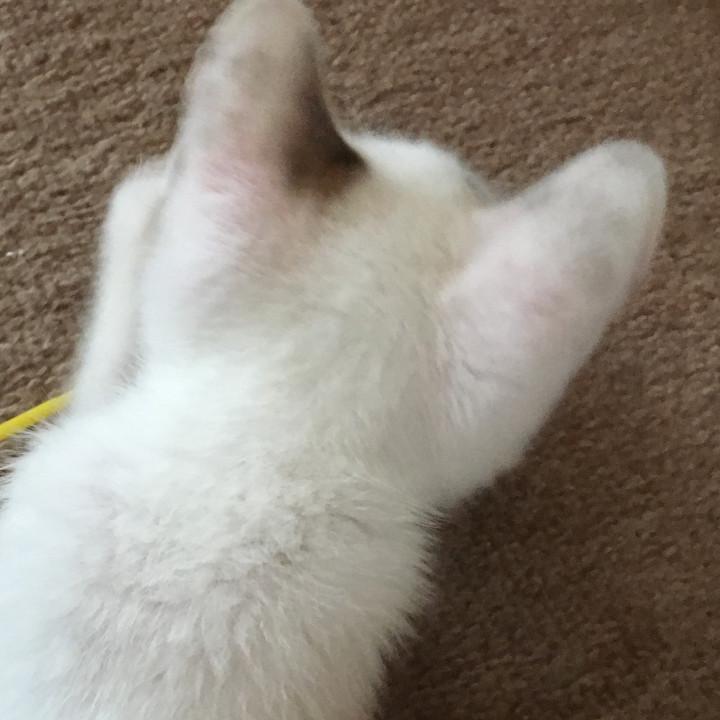 おもちも、ガリガリで、570gしかなくて、白い毛が、雨で濡れて、あれ?この子、白い毛なのに、爪が黒い、珍しい〜って思ったら、爪が泥で、汚れて、それがこびり付いて黒い爪になってた。細くて、小さな爪で、一生懸命に、泥んこ、掘ってたんだね。今は、ピンクな綺麗な爪。女の子は、爪は、綺麗なほうがいいね、おもち。