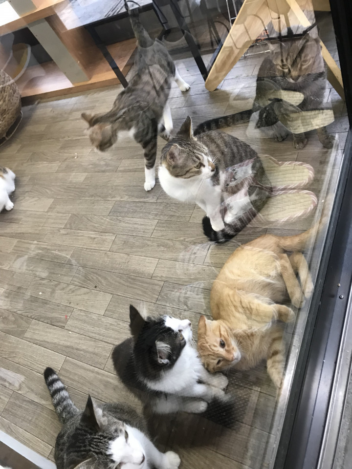 保護猫カフェで、