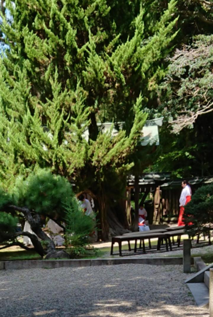 ※巫女さんがお参りしてる屋根の中に御神木があります。