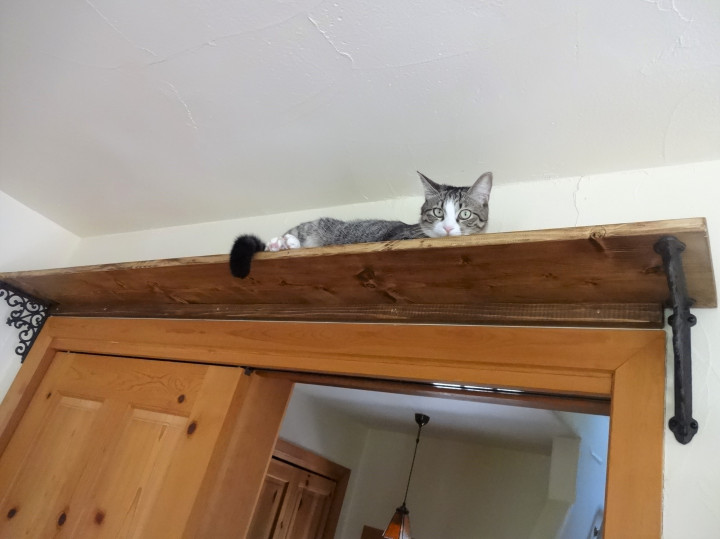 ドア枠の左右にアイアン棚受け金具を取り付け