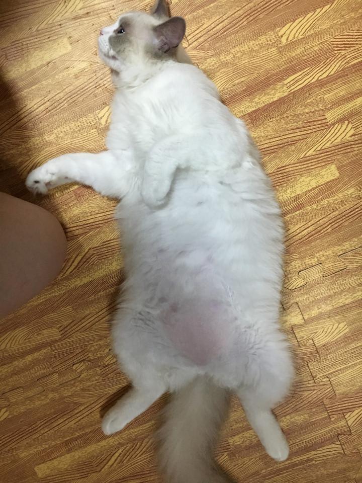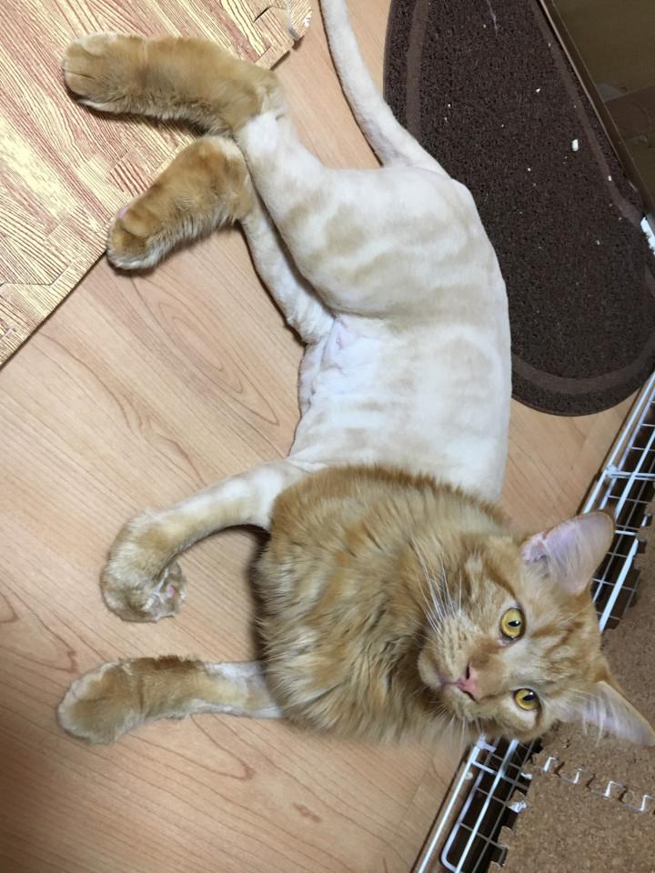 本にゃんも毛玉の所を触ると毛が引っ張られて痛いのか嫌がってましたがカット後はゴキゲン。
