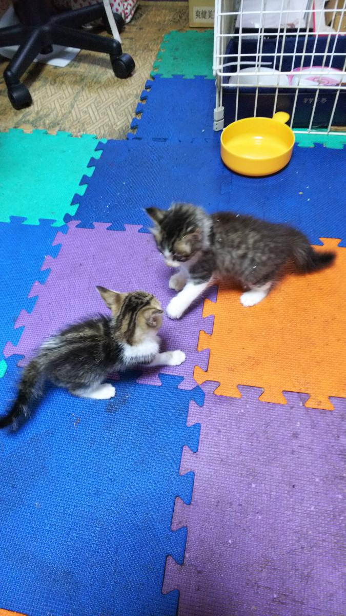 向かって左が短毛キジトラちゃん