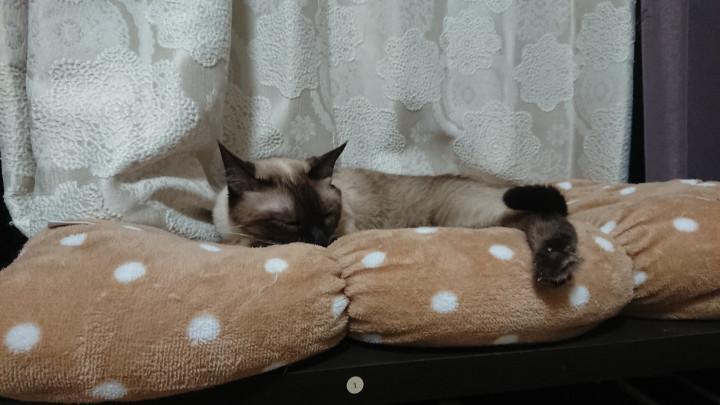 大福は私から見えるとこで微妙に手が届かない場所に寝るのよね。