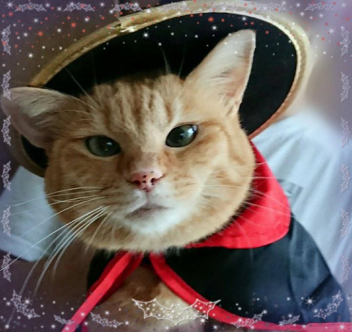 トラちゃん、夫が抱っこすれば、飾り首輪やマントも受け入れてくれるようになりました(笑)。