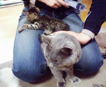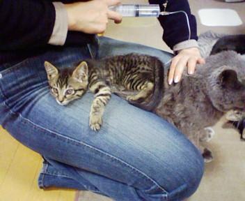 でも、子猫が近くにいると力が抜けるのか凄くスムーズに輸液出来ます。