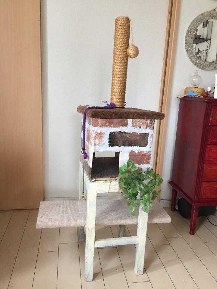 今日は、雨降りで、自宅で自作のキャットタワーを作ってみました♪