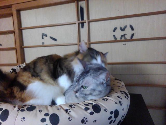 今日のニャンズです。朝から雨で☔ブルー🌁☔🌁みたいです。