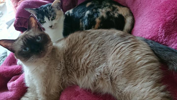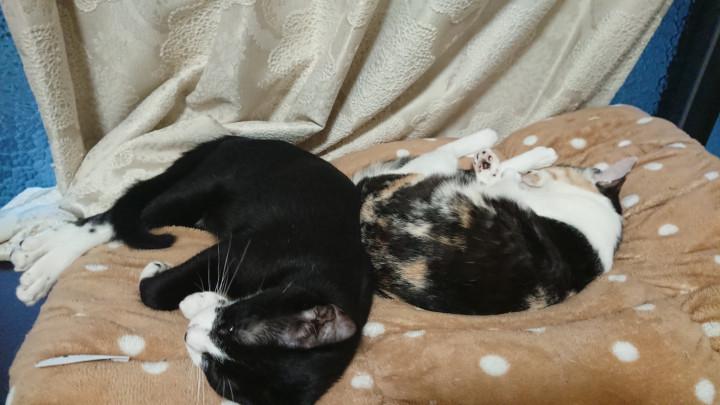 一緒に寝ている((((;゜Д゜)))雨が降ったから?