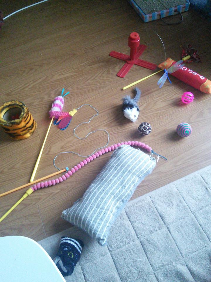 朝起きると、置いてあるおもちゃが全て出てます(笑)
