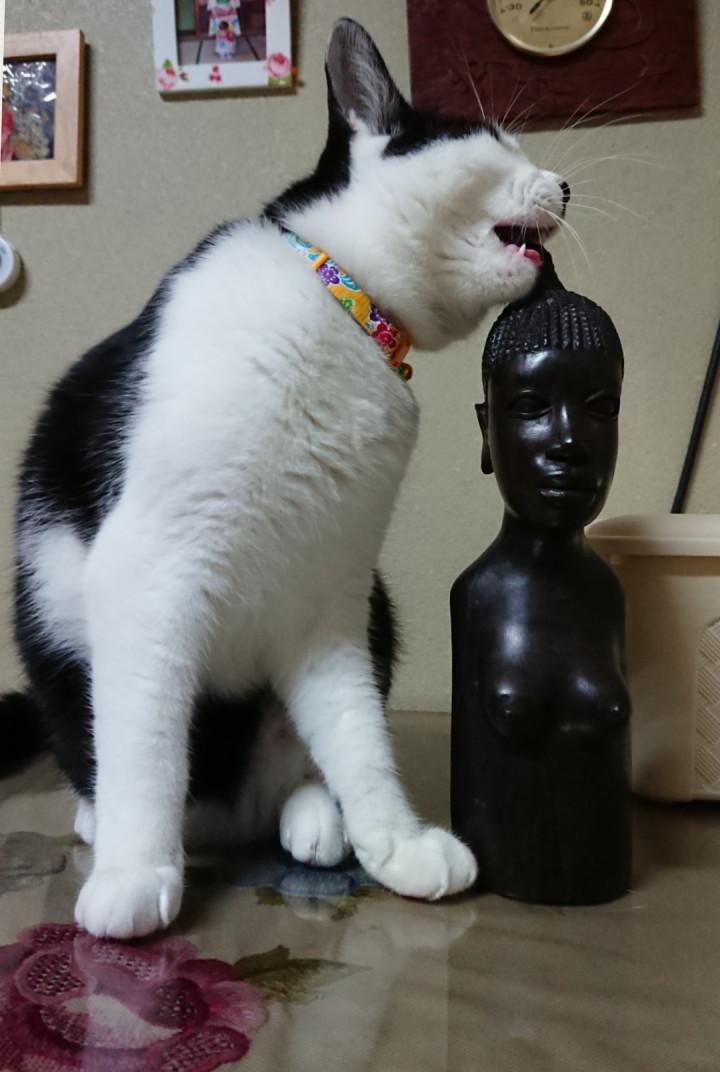 アフリカのタンザニア、モザンピーク周辺のマコンデ族が黒檀を使って彫刻しています。