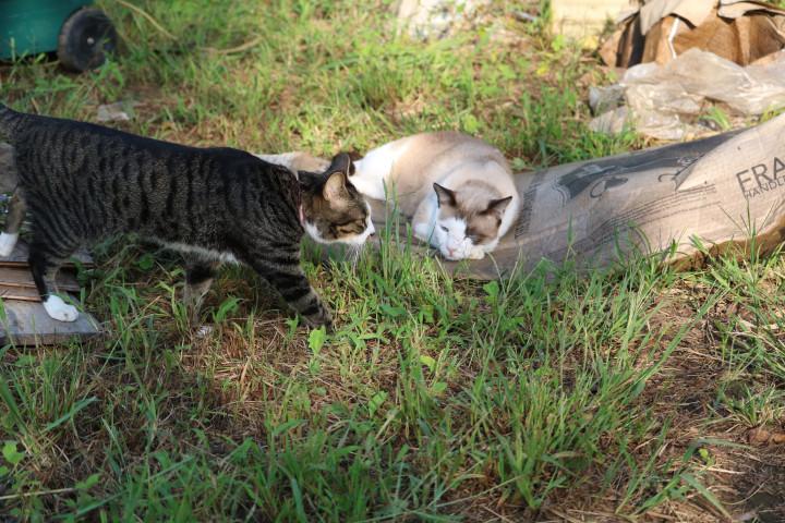 チー、ふぅ、猫屋敷のママ達、みんな白の声を聞いて挙動不審になって逃げてました。