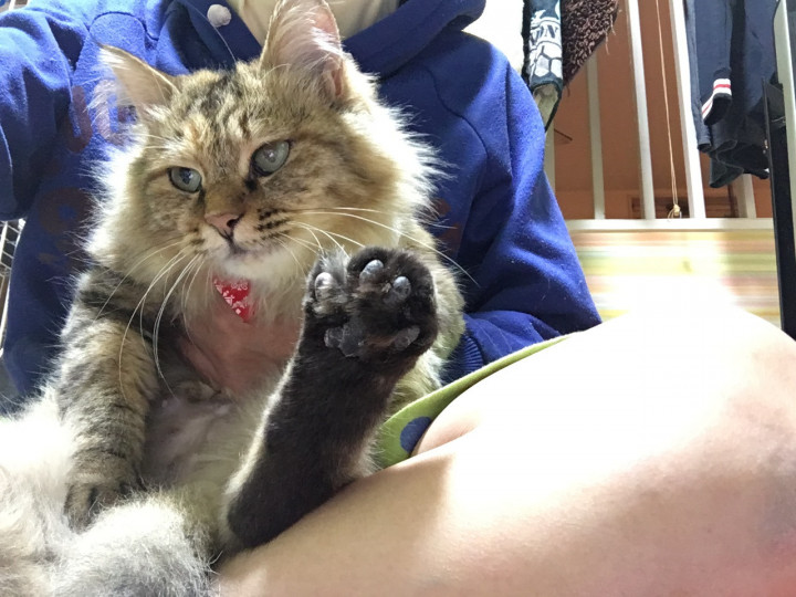 肉球拭かれるのが少しお嫌いなので、私が我慢しています😝