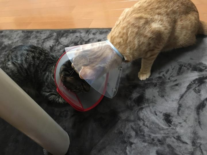 2人共エリザベスカラー付けてるから