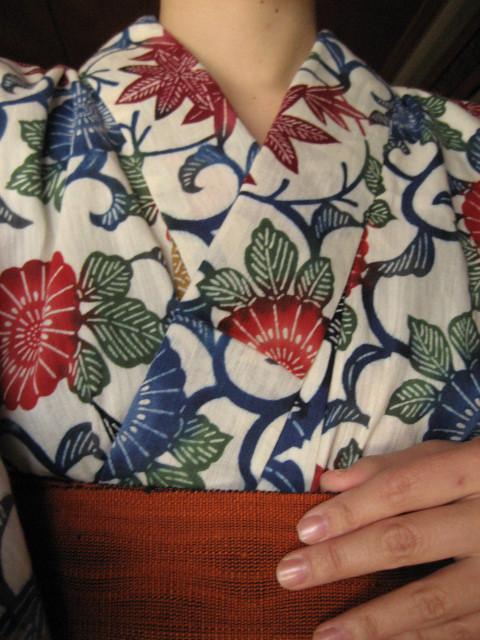 といっても、着付けを習っているわけではなくて、本を読んだり、お友達に着せてもらったりしながら手探りで着ています。