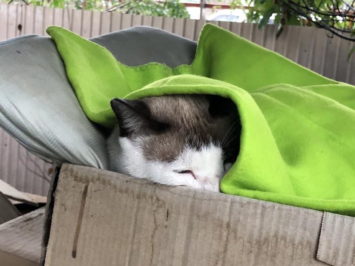 おやすみ〜雨が降ってるし、今日はここでゆっくり寝てね。