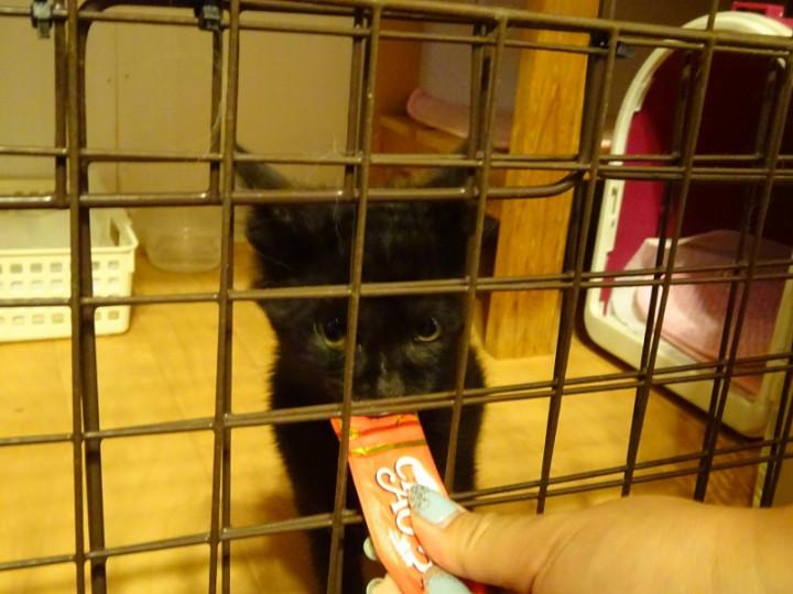 夕方6時半、外に出ると、なんと子猫が捕獲器に入っていてビックリ