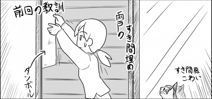3、雨戸のすきま風でガラスがギシギシ言ってたのが怖かったので対策。