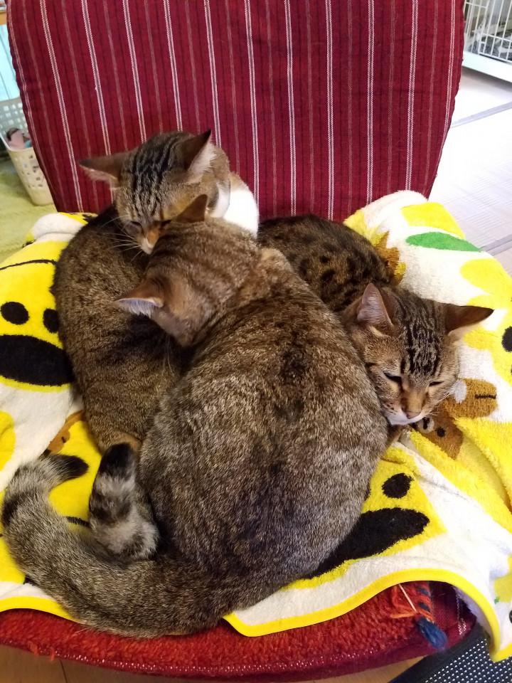 みんなニコちゃんが好きなのか、ニコちゃんのいるところに集まりやすいのですが、みんなニコちゃんにお構いなしにくっついてくるので、最終的にニコちゃんが隅に追いやられることが多いです😅