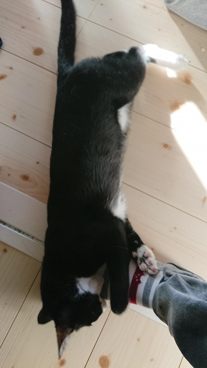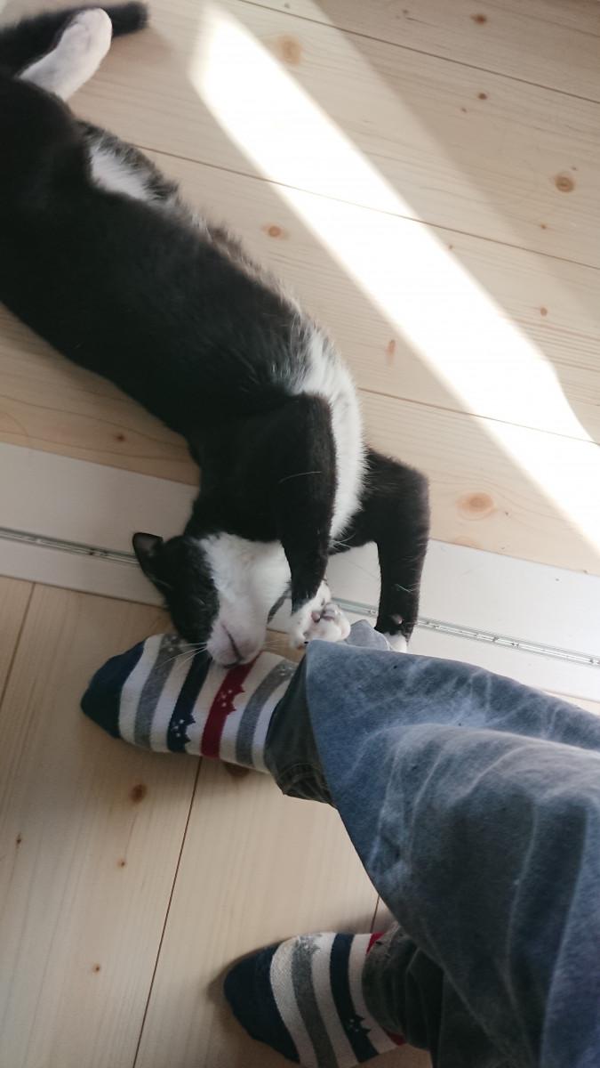 攻防戦の末、靴下を脱いで新たに履き替える対処でそそくさと仕事に向かいました。。