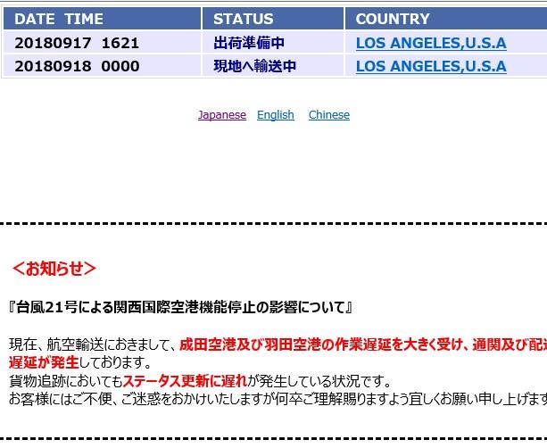 台風で関空やられたりで今日やっと届きました。ずっとロサンゼルスにいたのね…。