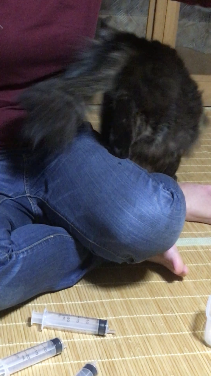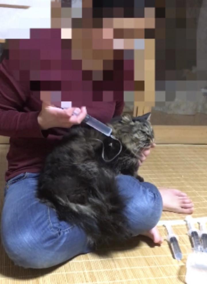 これは去年亡くなった猫ですがまだ調子が良かった時の補液風景です。