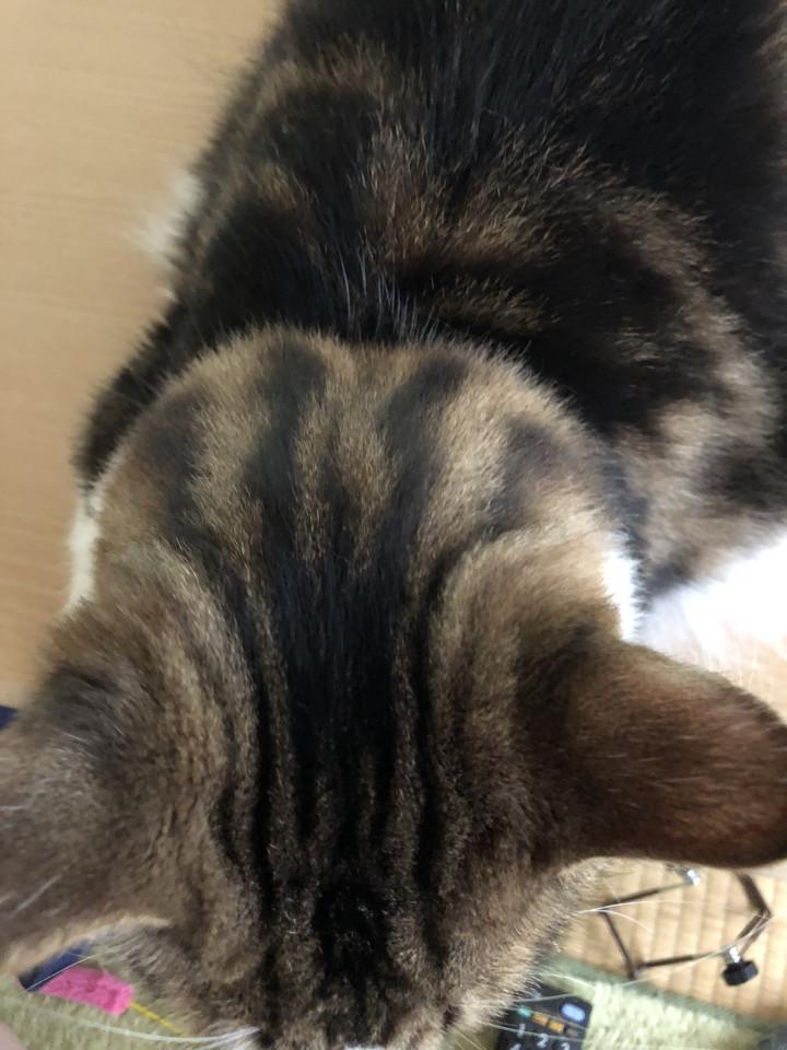 ハル君の頭、耳に挟まれた部分、おでこでしょうか、明確な匂いってものはないのですが、ここの匂いを嗅ぐとなんとなく「うちの子」の匂いがします。