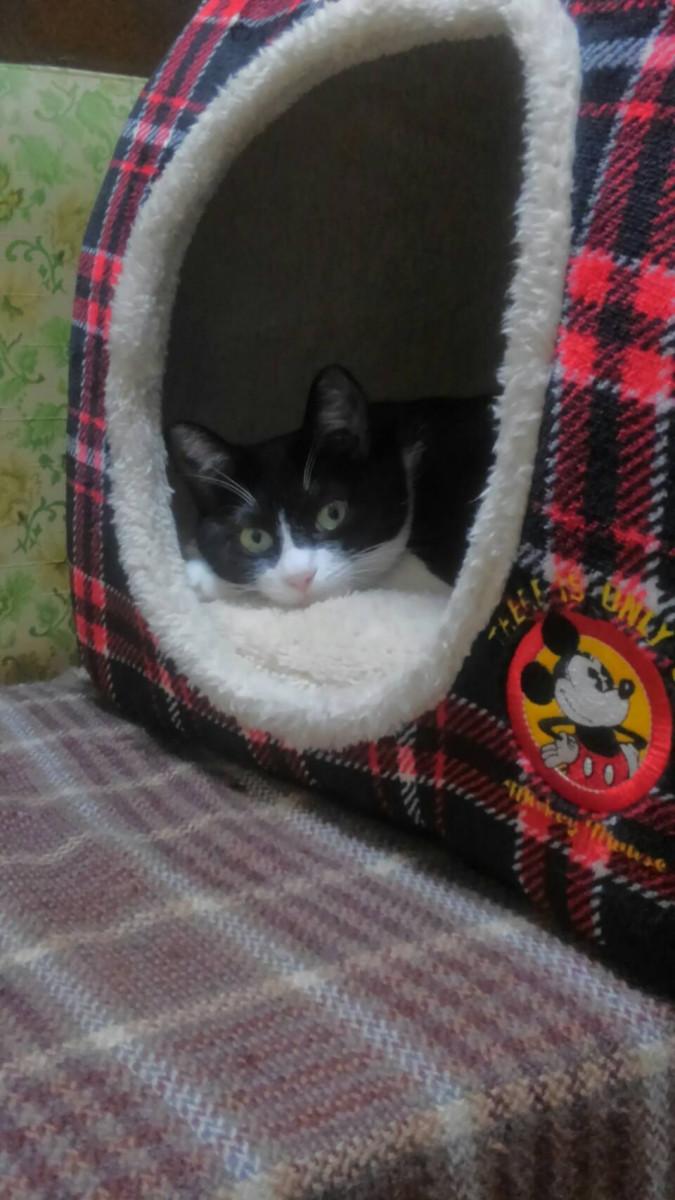 直ぐに気にいったようで、中に入り、踏み踏みしたり、眠たくなった時は、ちゃんと入りますd(^-^)