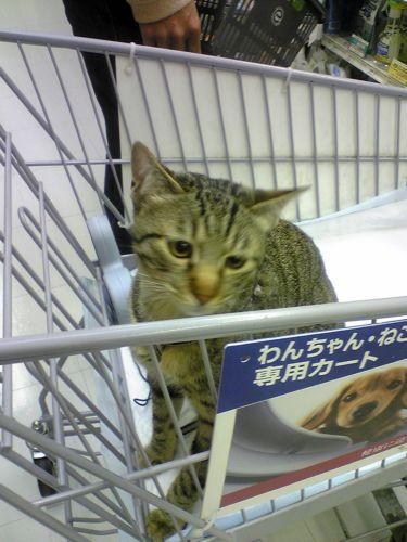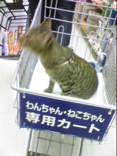 カートにはペットシートが敷いてあって、ペットの入店は専用カートに乗せる事、リードを曳いたり、抱きかかえての入店は不可という事が注意書きにあったよ。