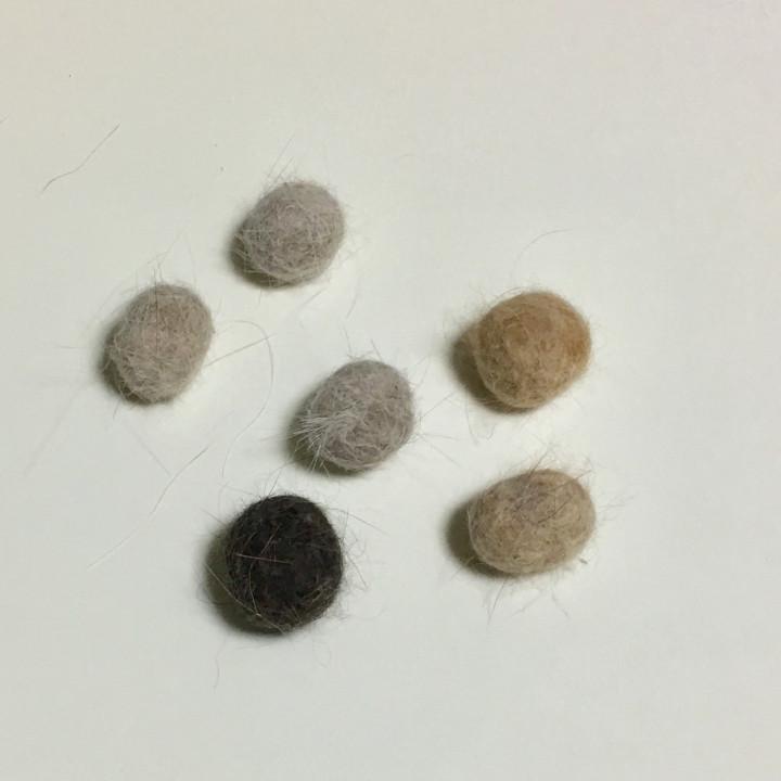 そう!うちの子たちのブラッシングして抜けた毛を、手で、グルグル〜って丸めた、毛玉。