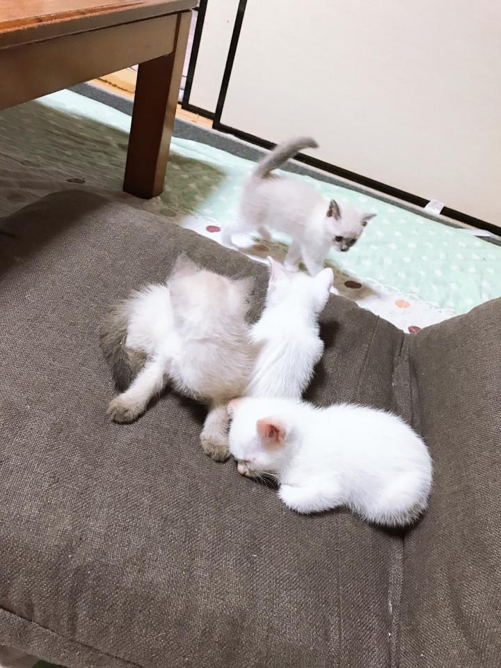 シロくんはだいぶ元気になって(^^)まだ目が少しおかしいのかな?それとも、生まれつき?貰った目薬もう少しさしてみようと思います。