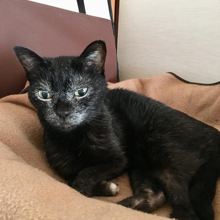 8月で、17歳。17年前の10月、公園で、倒れてた鍵しっぽの黒猫。黒猫だったのに、ここ数年で、白髪が目立ってきた。猫が、白髪になるって知らなかった(^^;;おっち、歳をとったね。いつのまにか、私を追い越した。最近、少し、食が細く、痩せてきた。