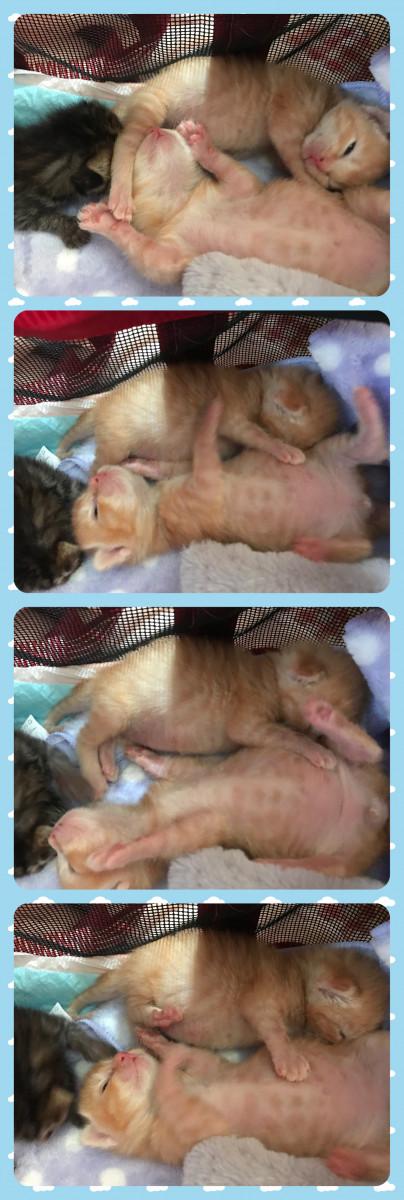 子猫達はみんにゃミルクを飲み終わるとよくひっくり返ってますが、お腹パンパンで苦しいのかなw