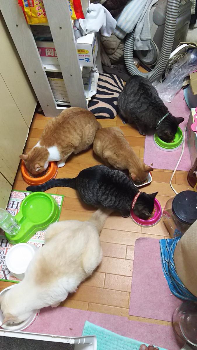 5ニャンズ揃ってお食事中久々だこの光景(笑)