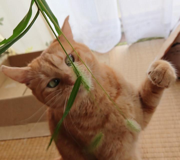 庭のエノコログサ、通称ネコジャラシでよく遊んでます。